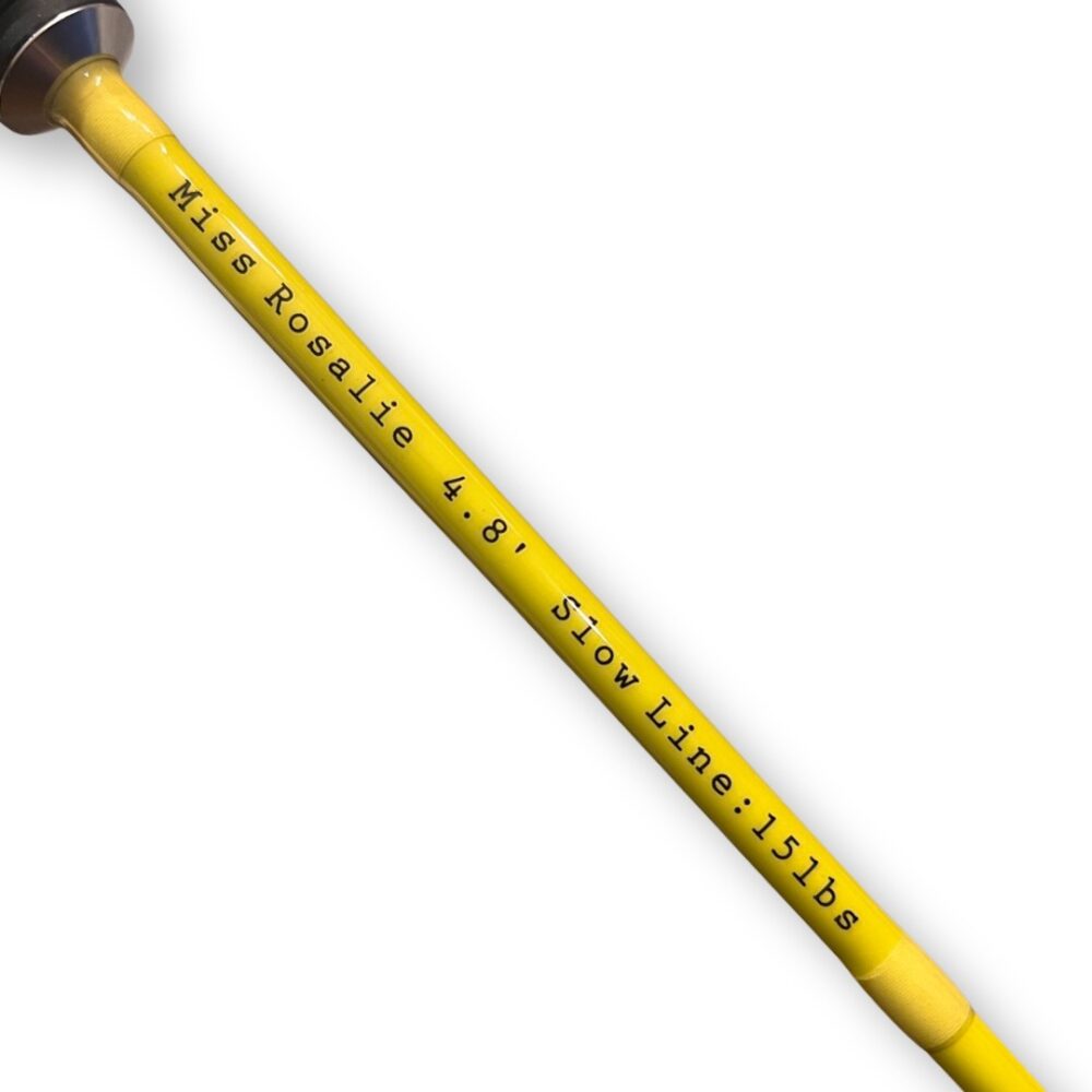 Miss Rosalie 4pi8po une pièce. Cette canne à action très lente est idéale pour les petits poissons et les poissons à bouche molle comme la truite, la perchaude, la marigane, etc. Elle peut être utilisée pour le lancer comme la traine ou la pêche au toc.